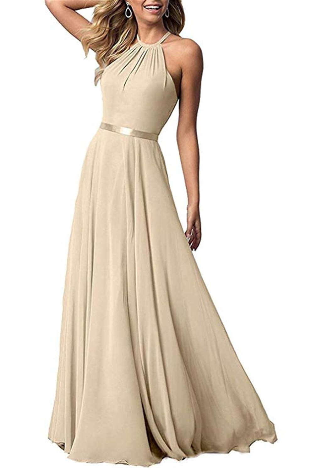 Long Chiffon Bridesmaid Dresses Halter Backless Formal Party Gowns For Women Dresses Foretadrenaline Com